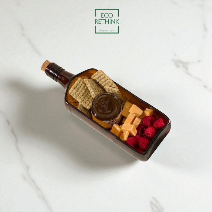 - Â QUALITY:Â Made from up-cycled bottle & that can withstand high temperatures. This platter is durable and can serve for a long time without losing its functional qualities and appearance. Easy to clean and dishwasher safe.