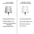 - 𝐏𝐨𝐫𝐭𝐚𝐛𝐥𝐞 𝐂𝐨𝐫𝐝𝐥𝐞𝐬𝐬 𝐃𝐞𝐬𝐤 𝐋𝐚𝐦𝐩: Cordless Desk Lamp Is Made from the Highest Quality plastic, Cordless Light for Living Room; Suitable for Home (Indoor). Reading, Creating Ambience Conditions, Outdoor Table Lamp for Bedroom, Living Room, Bar , Restaurant and Terrace Etc.