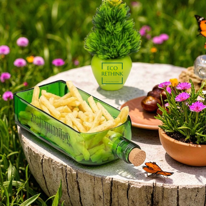 - Â QUALITY:Â Made from up-cycled bottle & that can withstand high temperatures. This platter is durable and can serve for a long time without losing its functional qualities and appearance. Easy to clean and dishwasher safe.